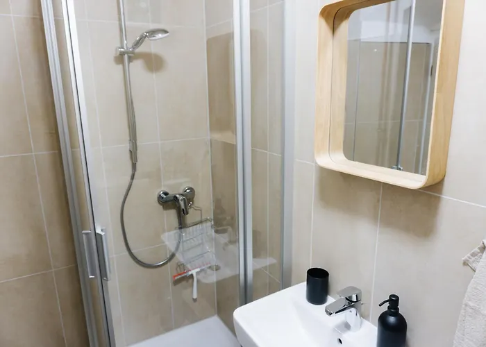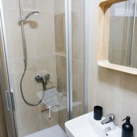 The apartment is equipped with a bathroom that features a hairdryer.